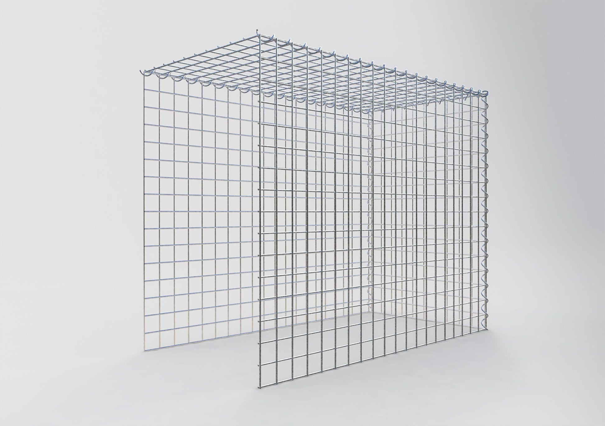This gabion is missing a front and bottom grille. This allows your gabion to grow in both length and height. Please note that the