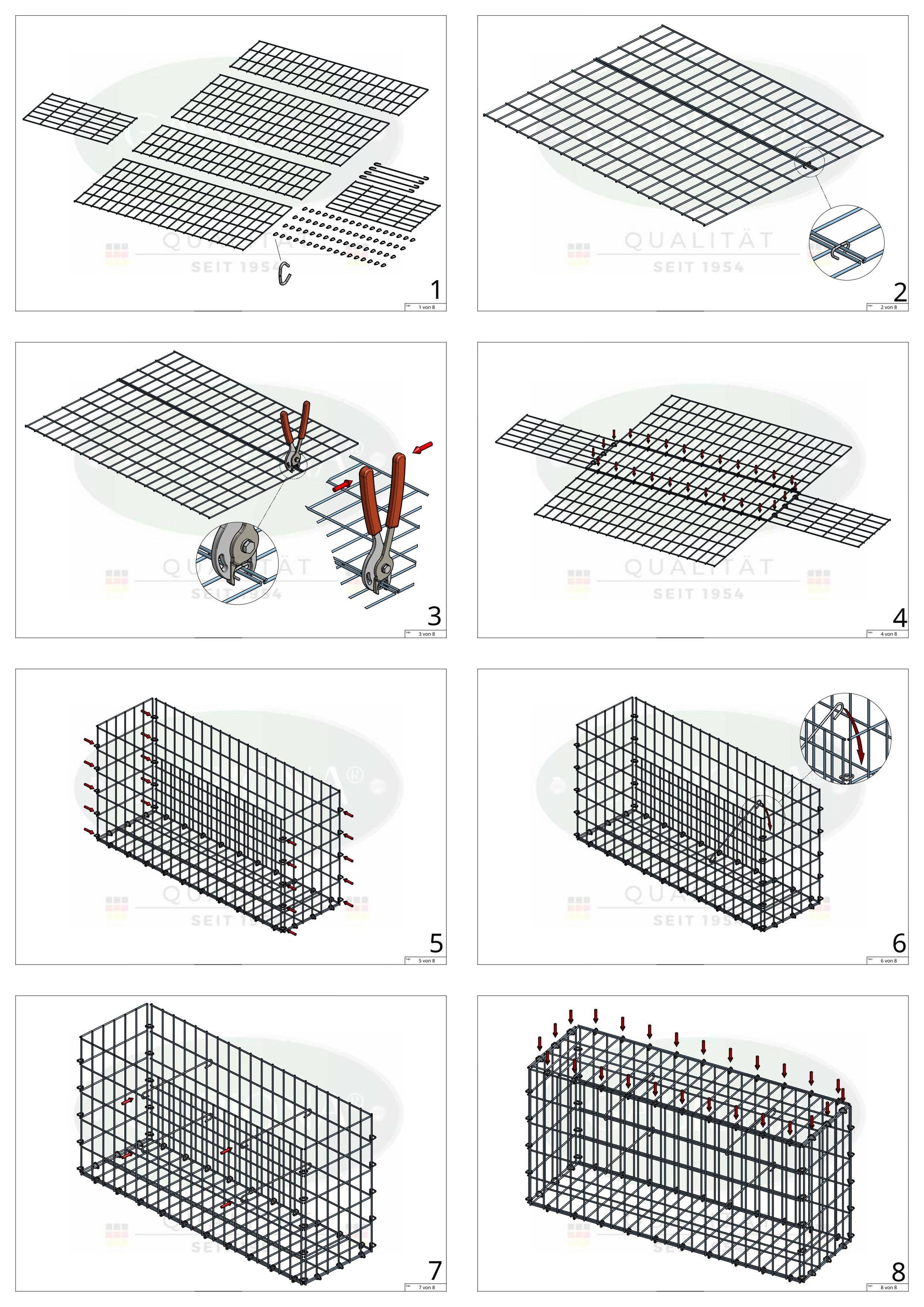| Scope of delivery: | 6 grid mats C-rings for connecting the grids simple C-ring pliers for assembly (one pliers per order) Spacers (prevent bulging of the grilles) |