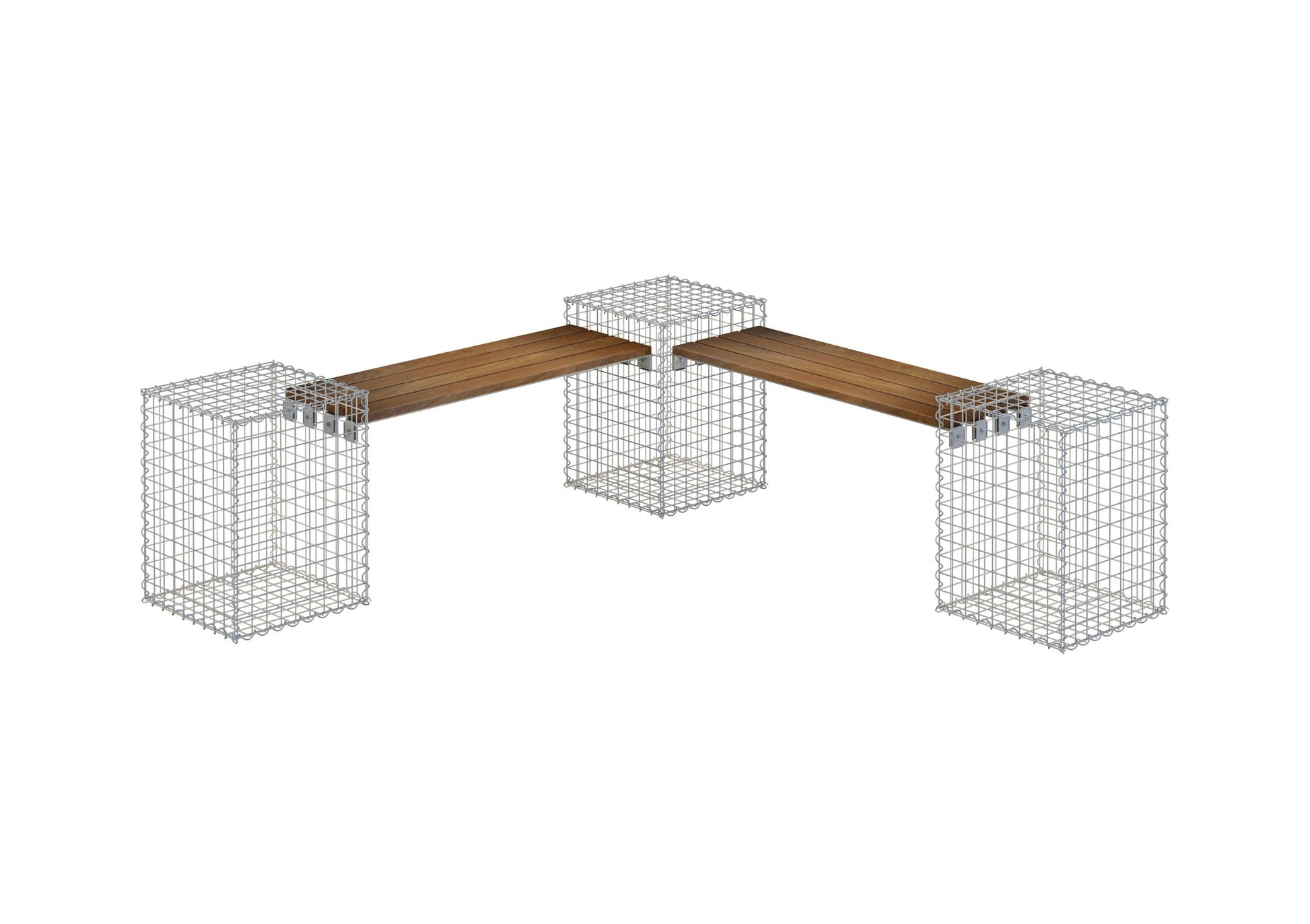 Modern and versatile - gabion bench with 3 spiral gabions made of Cumaru wood