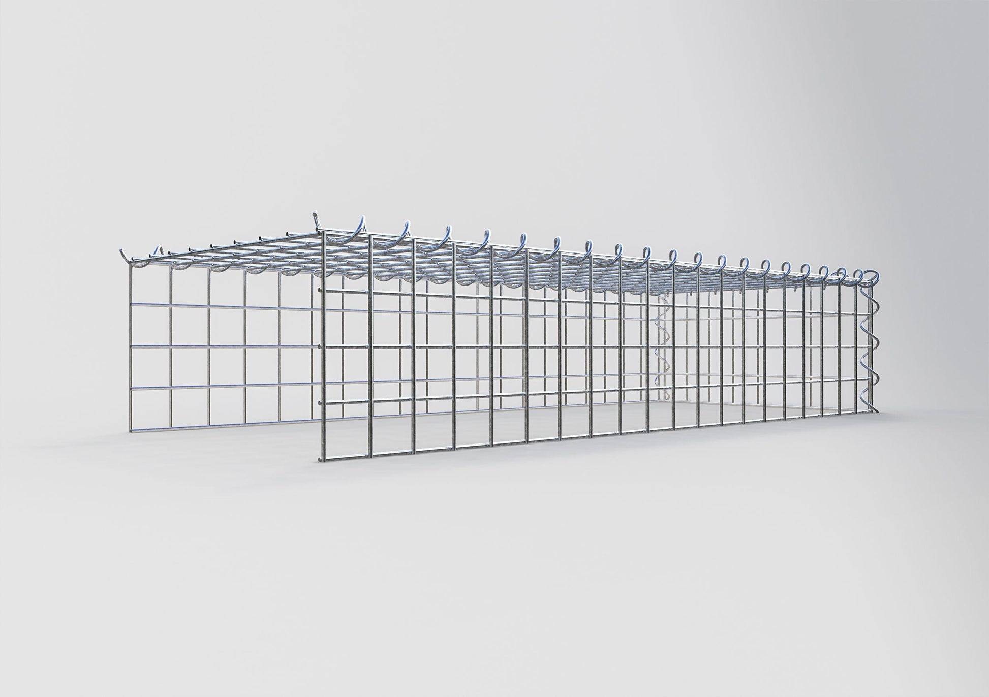 Este gavión no tiene rejilla frontal ni en la base. Esto permite que su gavión crezca tanto en longitud como en altura. Tenga en cuenta que el