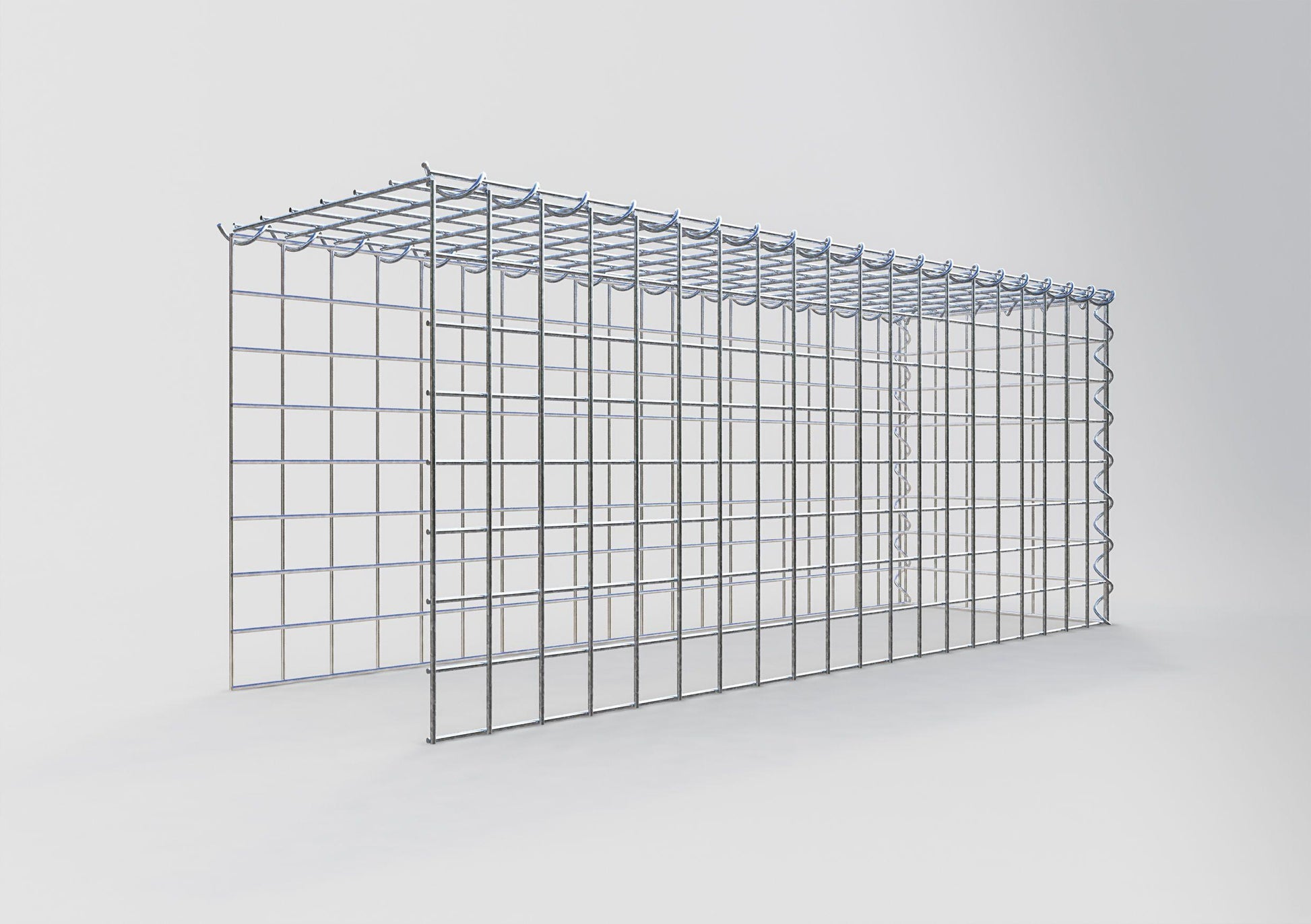 A este gavión le faltan una rejilla delantera e inferior. Esto permite que su gavión crezca tanto en longitud como en altura. Tenga en cuenta que el