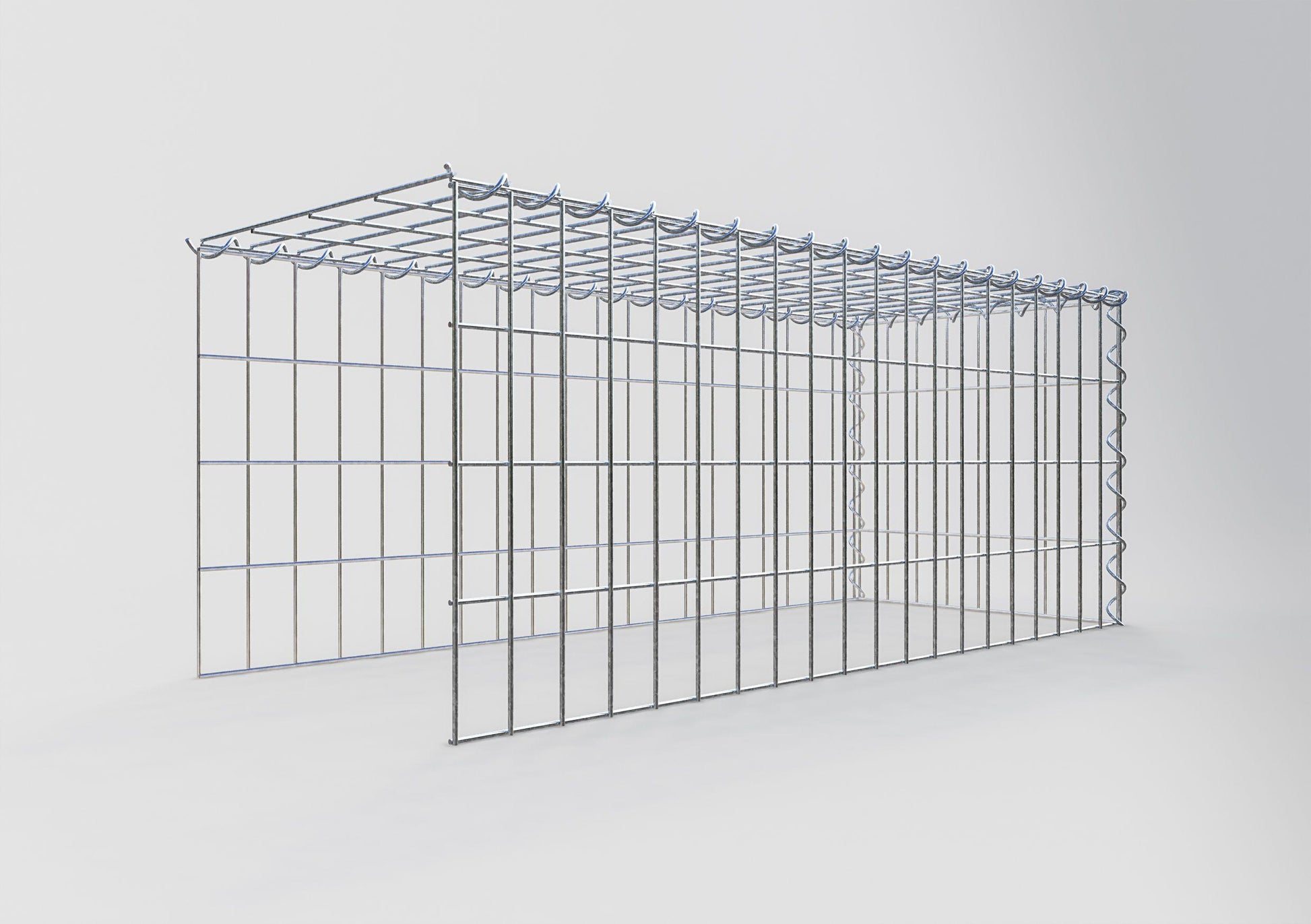 Este gavión no tiene rejilla frontal ni en la base. Esto permite que su gavión crezca tanto en longitud como en altura. Tenga en cuenta que el