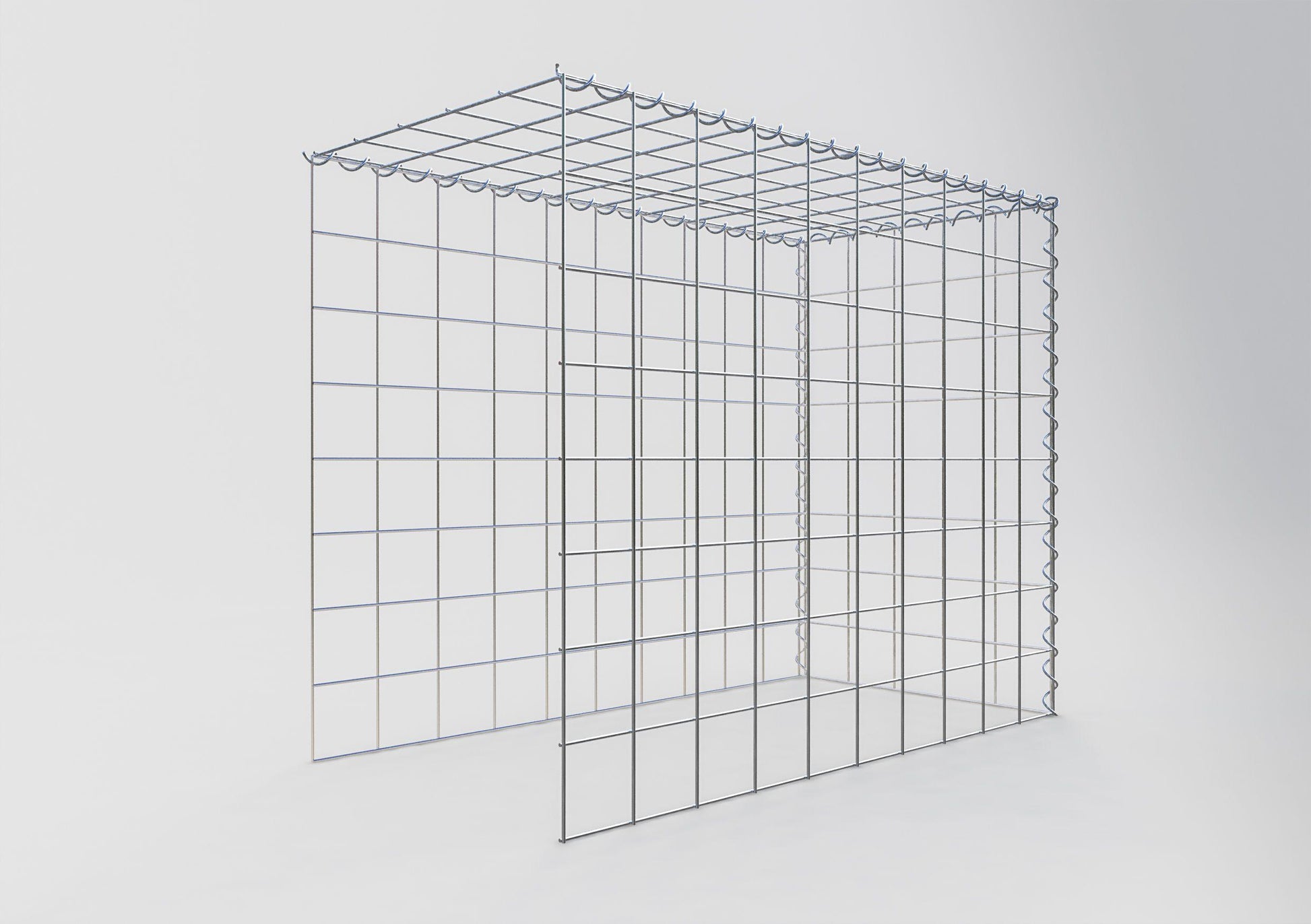 Este gavión no tiene rejilla frontal ni en la base. Esto permite que su gavión crezca tanto en longitud como en altura. Tenga en cuenta que el