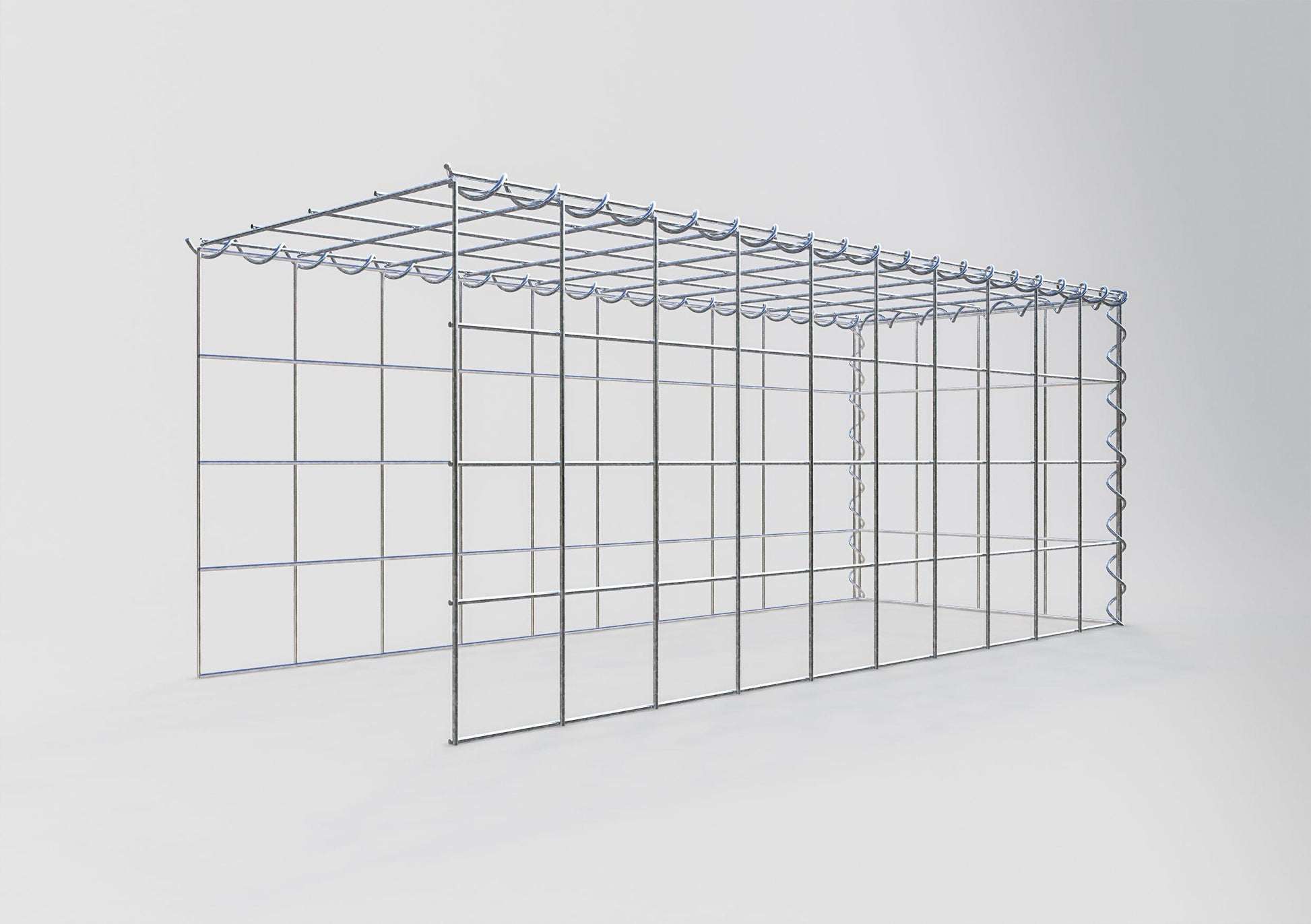 Relie les treillis sans aucun outil - rapidement, facilement et en toute sécurité. Les spirales sont la manière la moins compliquée de construire des gabions stables à partir de nos grillages. Le fil de fer de 4 mm d'épaisseur est plié en forme de spirale et est torsadé à travers les grillages au niveau des bords. Tourne la spirale le long du bord pour que les grillages soient uniformément et solidement reliés entre eux.