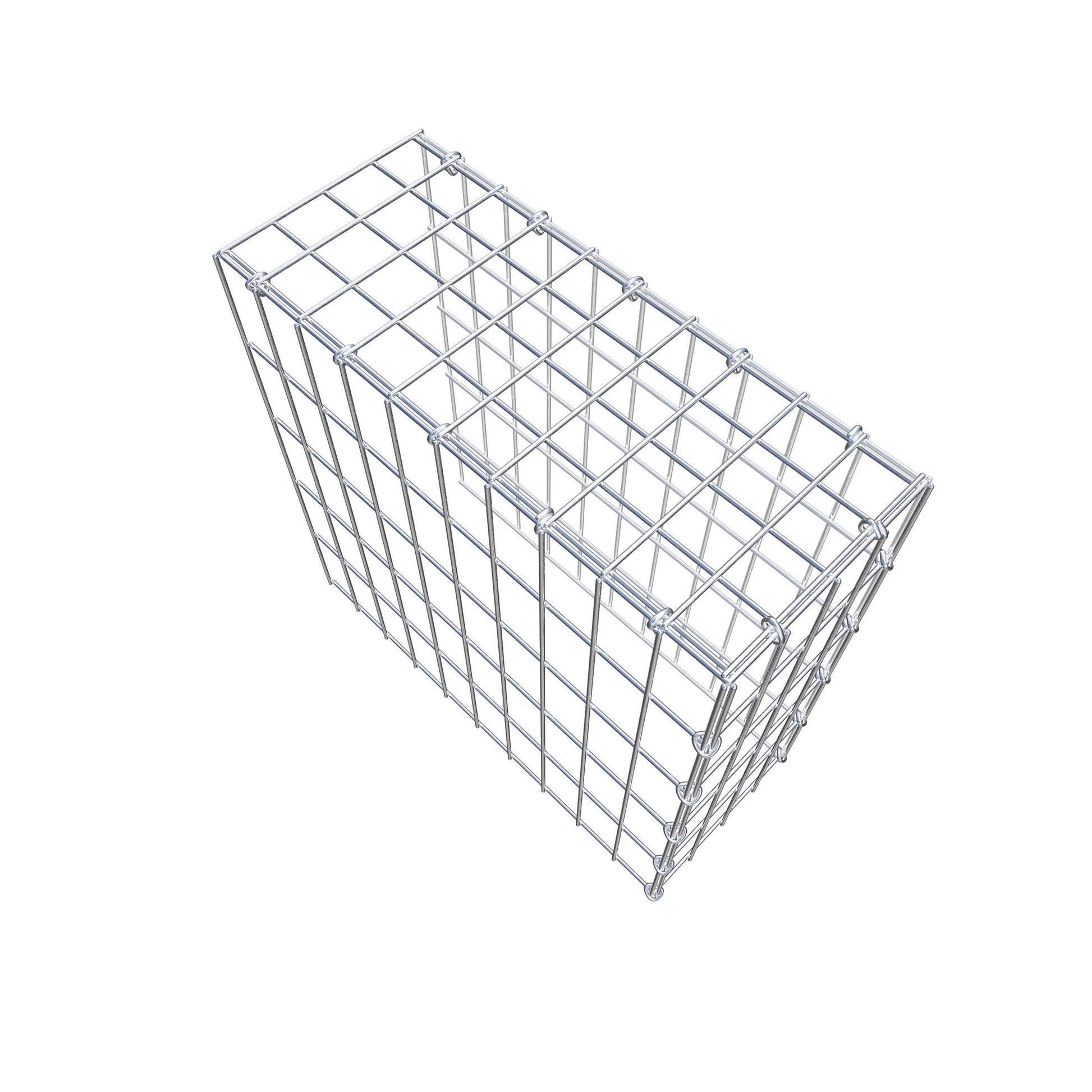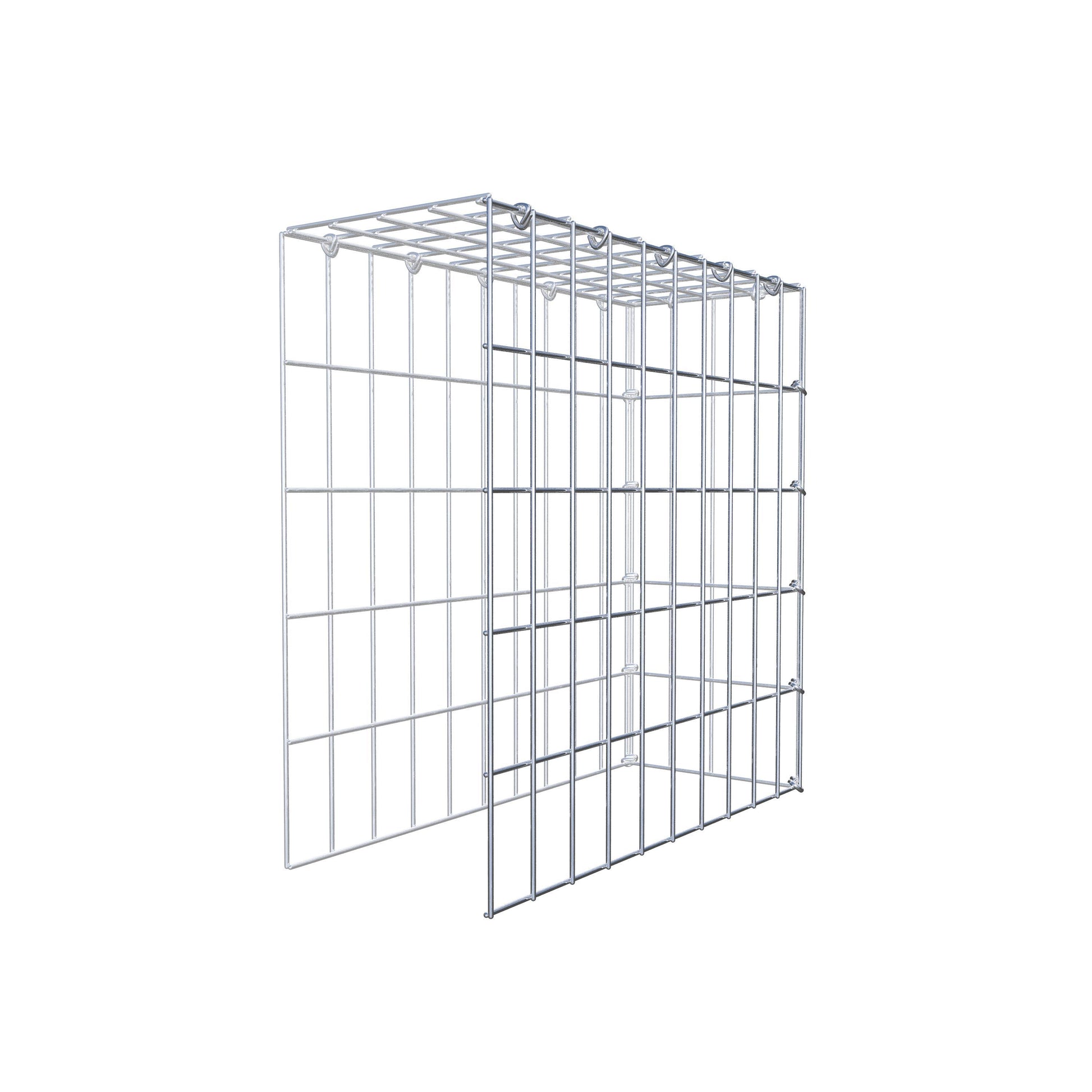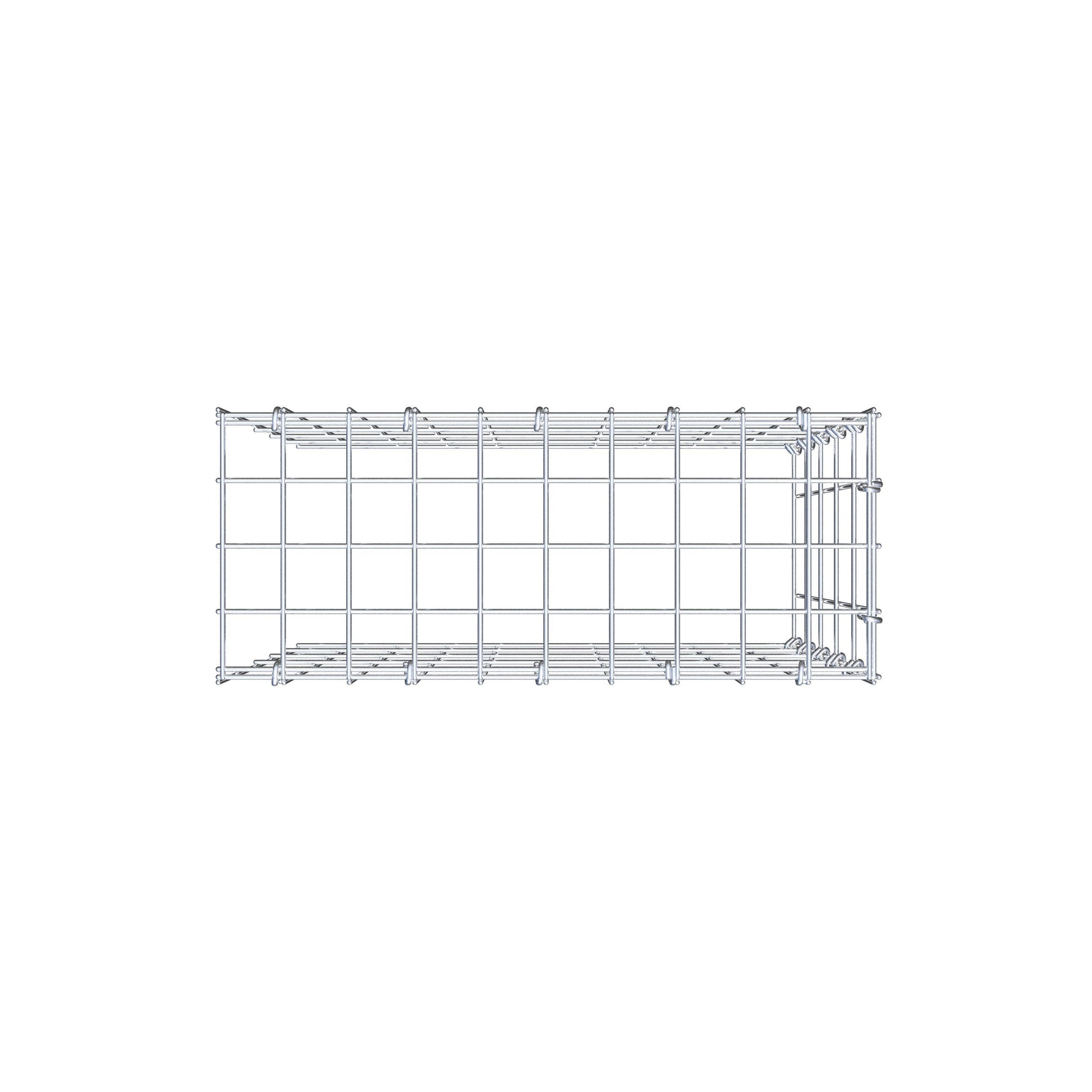 • Remarque : pas de propre grille de fond ni de grille frontale - la liaison se fait par la grille du couvercle et la fermeture du gabion inférieur ainsi que par la fermeture du gabion latéral.