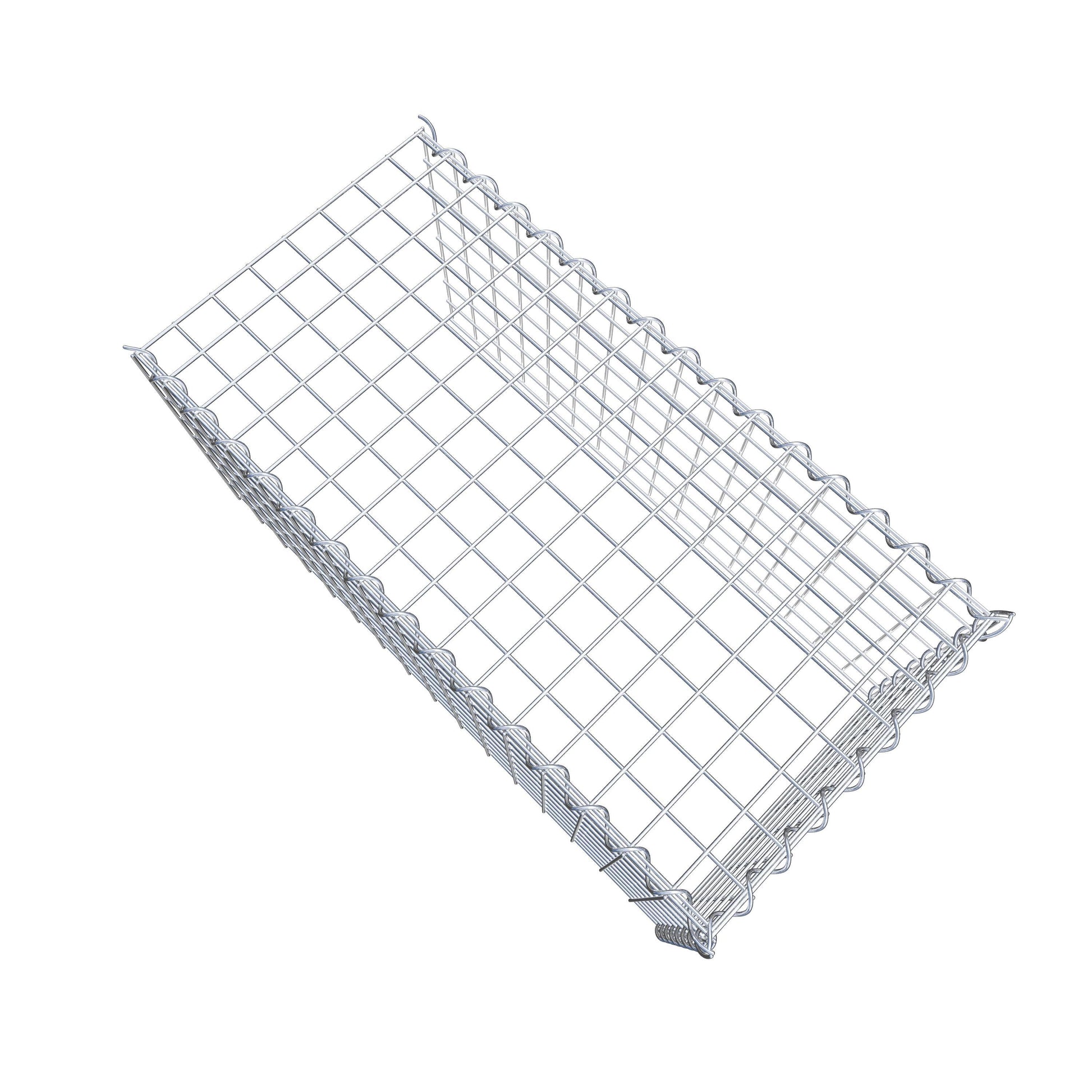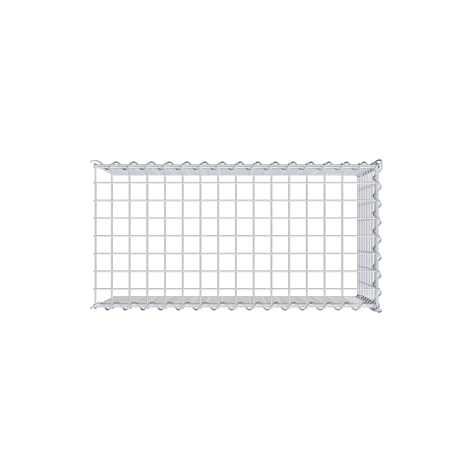 • Remarque : pas de propre grille de fond ni de grille frontale - la liaison se fait par la grille du couvercle et la fermeture du gabion inférieur ainsi que par la fermeture du gabion latéral.