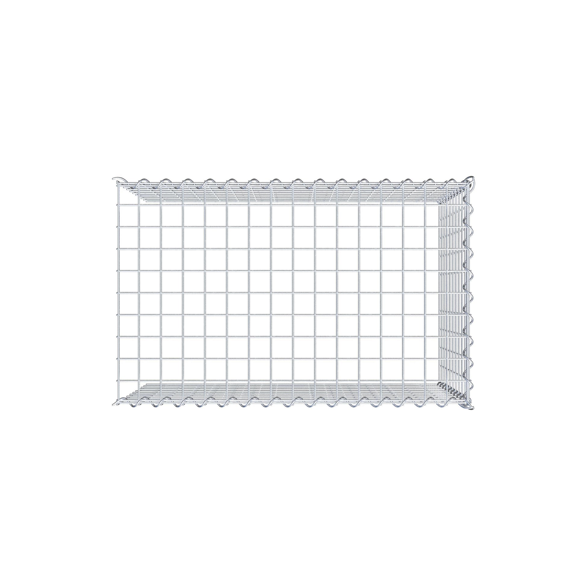 • Remarque : pas de propre grille de fond ni de grille frontale - la liaison se fait par la grille du couvercle et la fermeture du gabion inférieur ainsi que par la fermeture du gabion latéral.