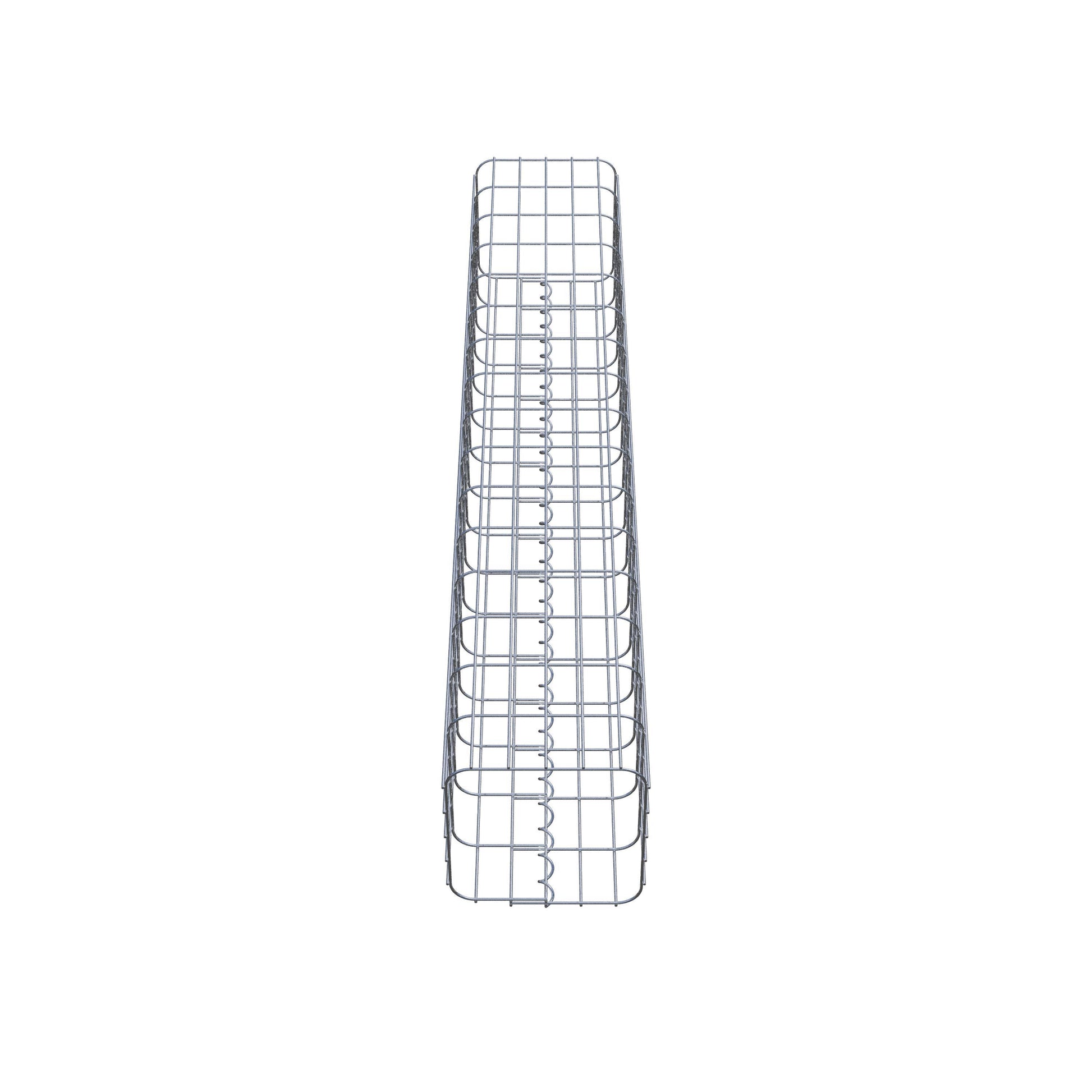 La fermeture latérale s'effectue au seul point de chevauchement du grillage avec une spirale qu'il suffit de visser et de comprimer. On obtient ainsi un assemblage propre, sûr et durable. Il est également possible de fermer la colonne de gabion à l'aide d'agrafes, disponibles séparément. Les colonnes sont ouvertes vers le haut et vers le bas - une grille de fond ou un couvercle n'est pas nécessaire et n'est donc pas inclus dans la livraison. Si nécessaire, un couvercle peut être acheté en supplément.