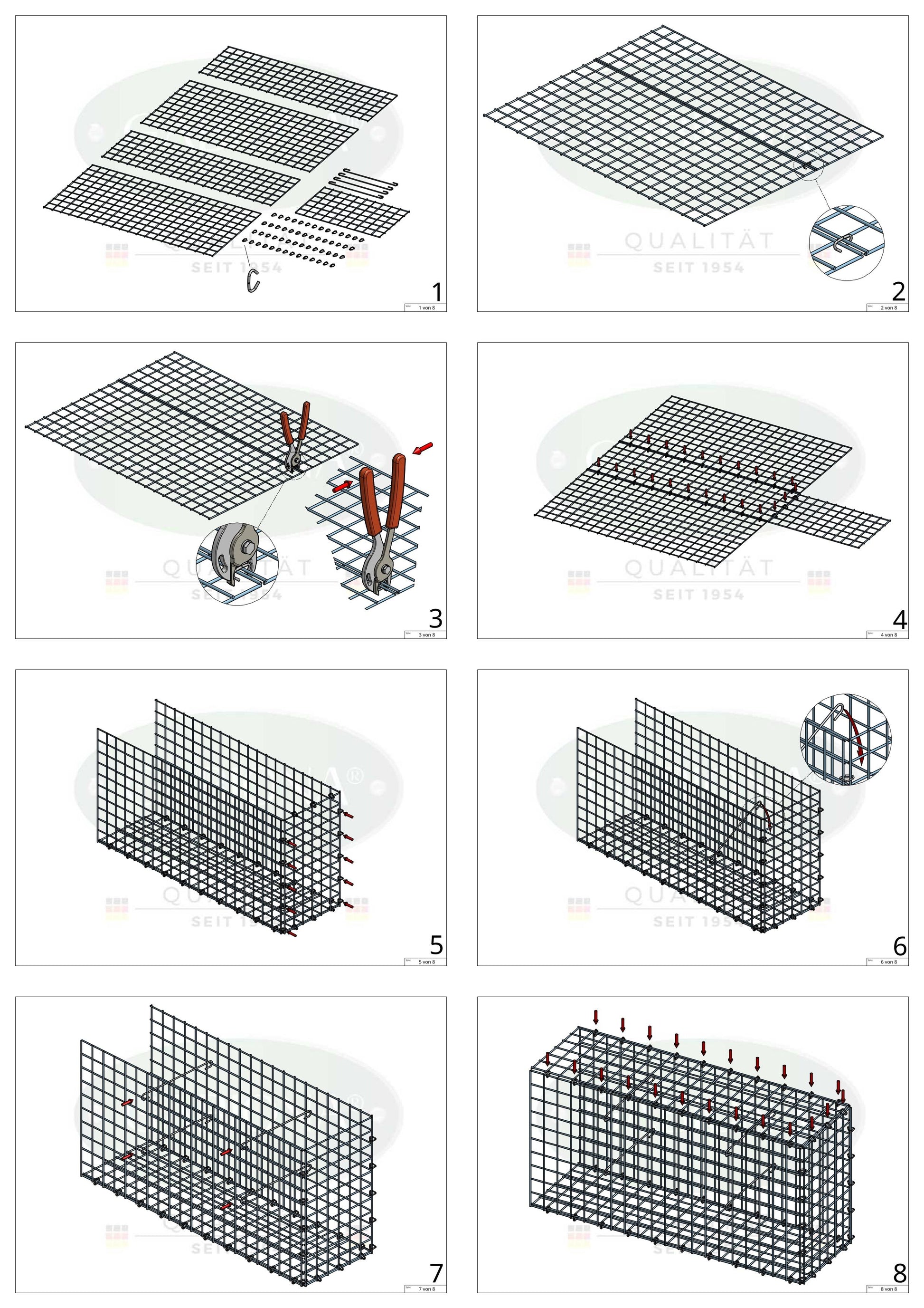 Die Ringe bestehen - wie auch die Gitter - aus galvanbeschichtetem Draht.