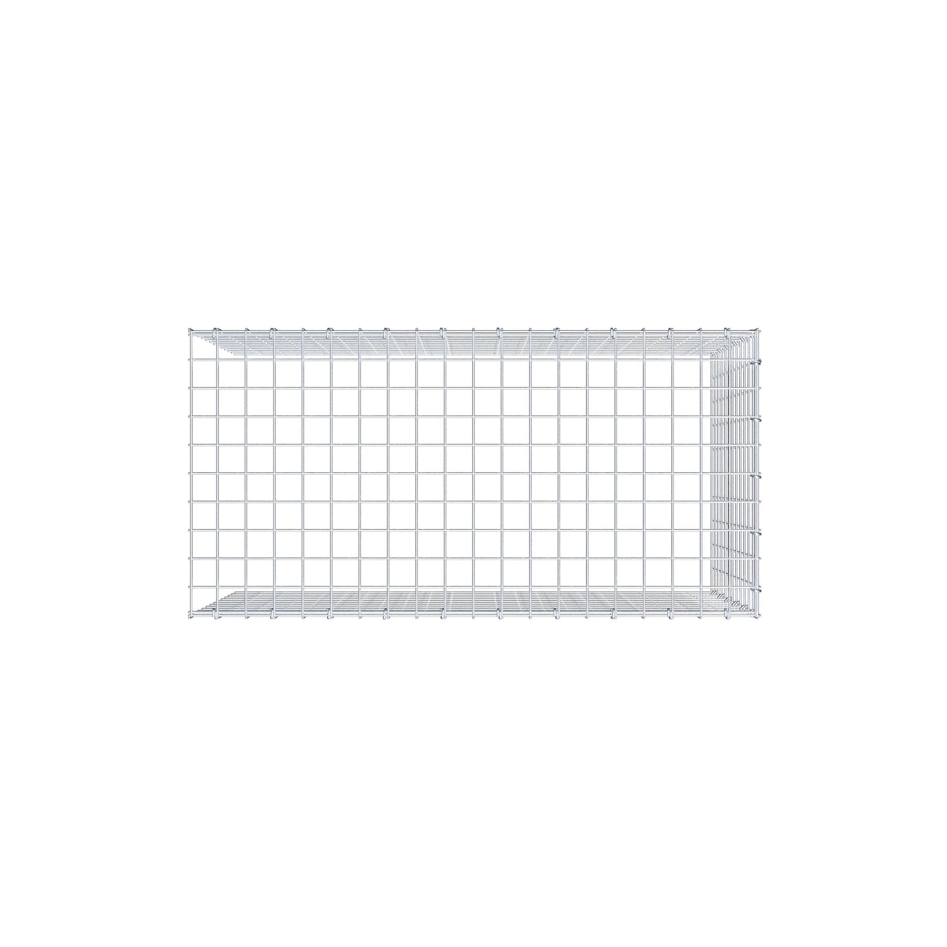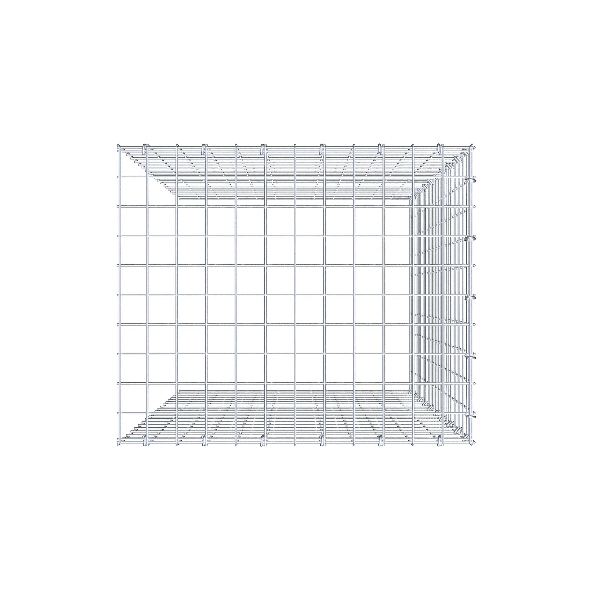 • Hinweis: kein eigenes Bodengitter und kein eigenes Stirngitter – die Verbindung erfolgt über das Deckelgitter und den Verschluss der unteren Gabione sowie den Verschluss der seitlichen Gabione.