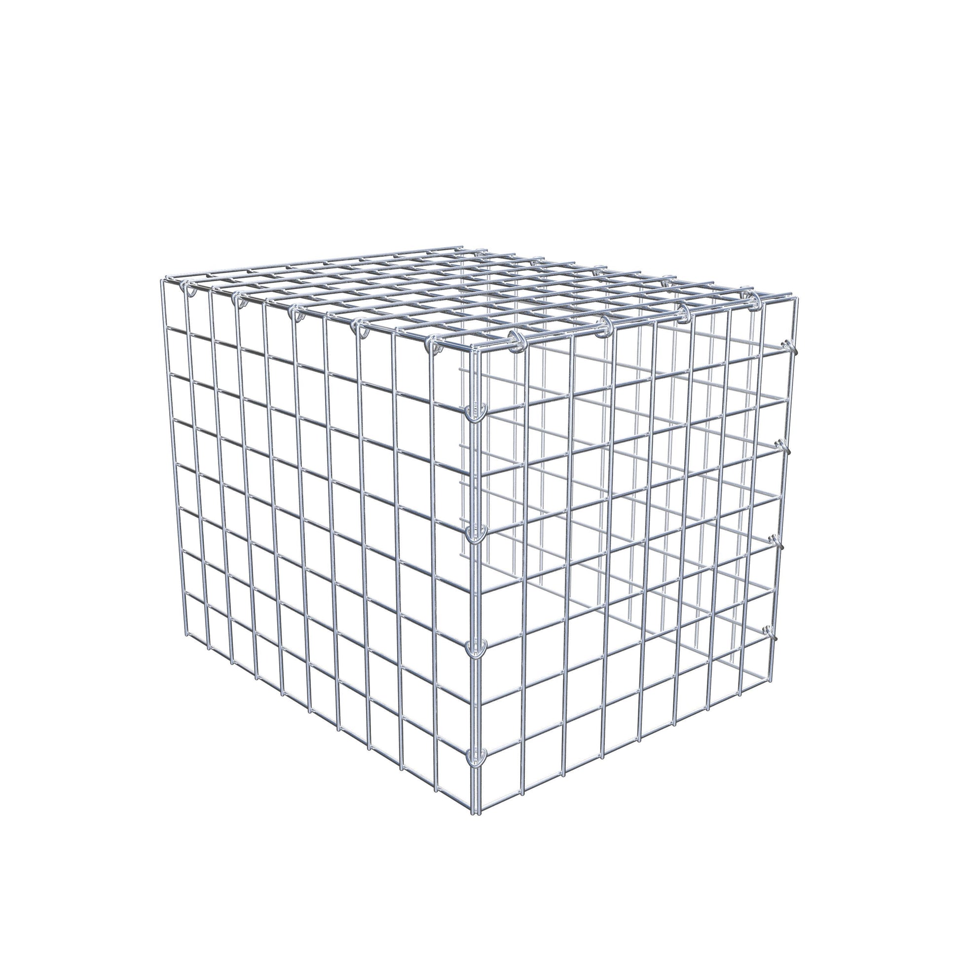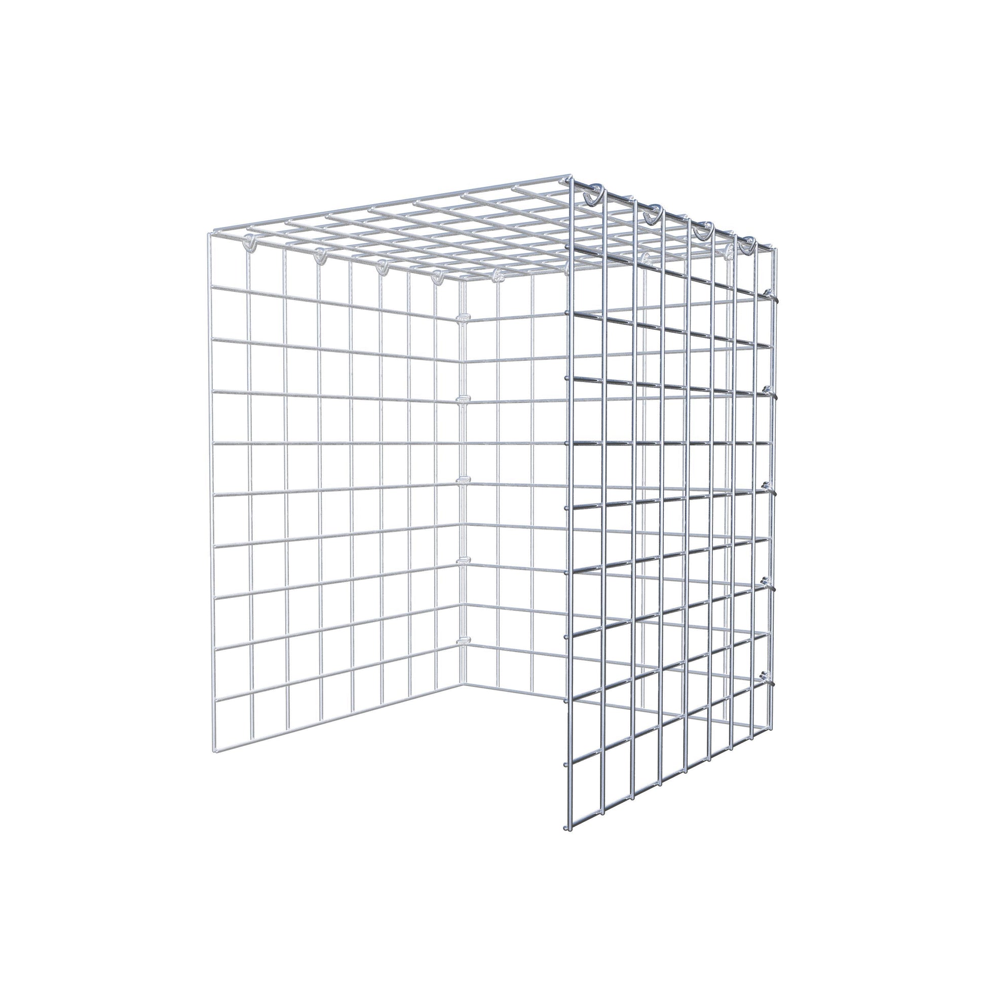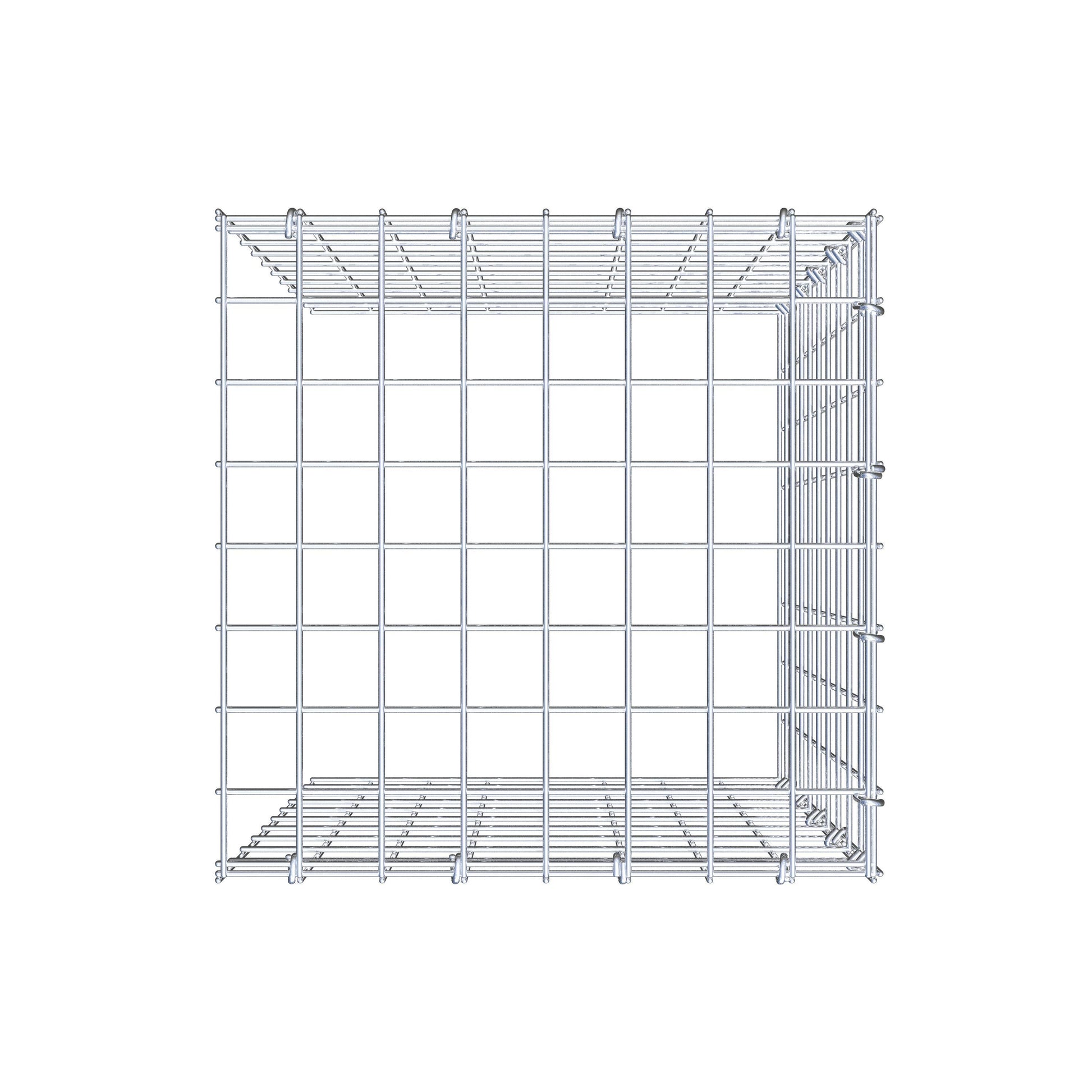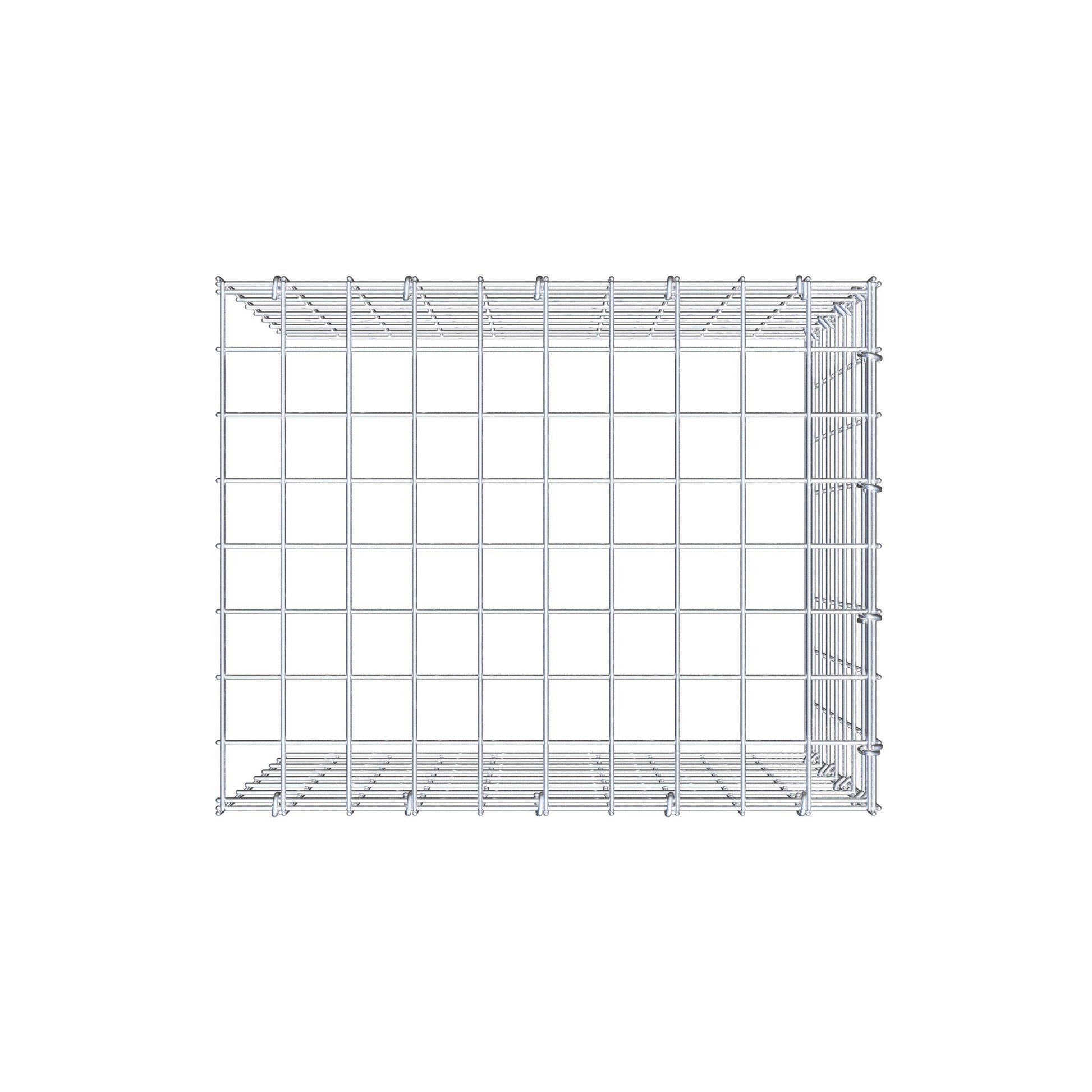 • Hinweis: kein eigenes Bodengitter und kein eigenes Stirngitter – die Verbindung erfolgt über das Deckelgitter und den Verschluss der unteren Gabione sowie den Verschluss der seitlichen Gabione.