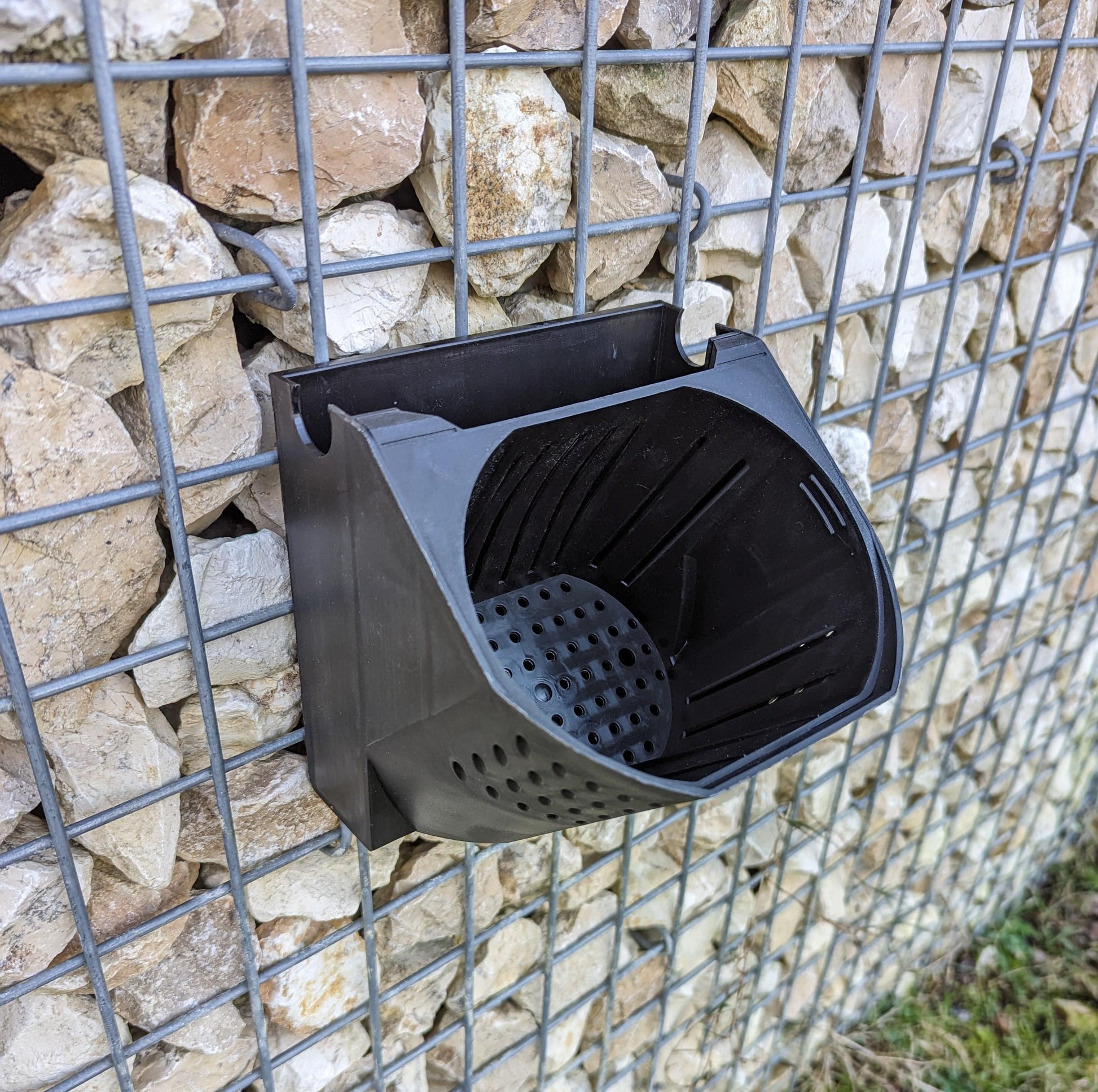 Die Befestigung dieses Blumentopfs an Ihrer Gabione ist denkbar einfach. Der Topf wird von außen an das Gitter eingehakt und ist sofort bereit zur Befüllung.