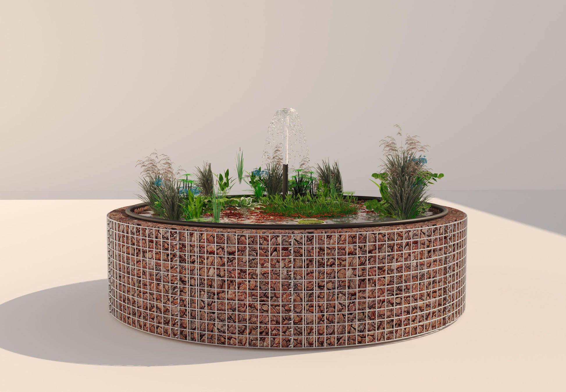Verleih Deinem Garten, Deiner Terrasse oder Deinem Balkon eine moderne und stilvolle Note mit unserem Gabionen Hochteich. Das runde Design entsteht durch die Verbindung stabiler Gabionengitter – ein zeitloser Blickfang, der sich nahtlos in jede Umgebung einfügt.