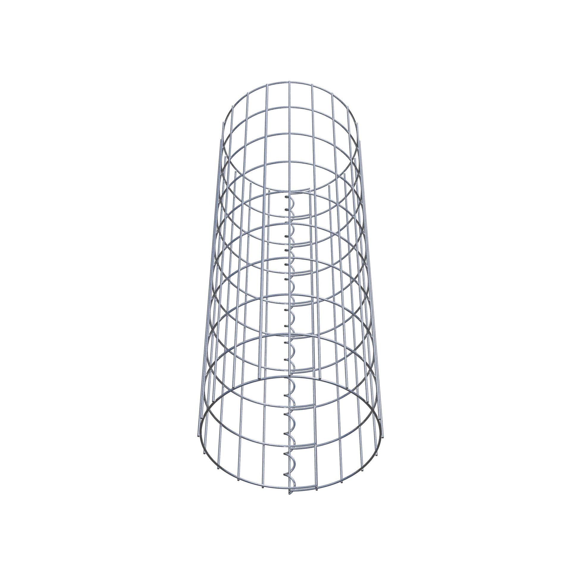 Der seitliche Verschluss erfolgt an der einzigen Überlappungsstelle des Gitters mit einer Spirale, die einfach eingedreht und zusammengedrückt wird. So entsteht eine saubere, sichere und dauerhafte Verbindung. Alternativ kann die Gabionensäule auch mit Klammern verschlossen werden, die separat erhältlich sind. Die Säulen sind nach oben und unten offen – ein Bodengitter oder Deckel ist nicht erforderlich und daher nicht im Lieferumfang enthalten.