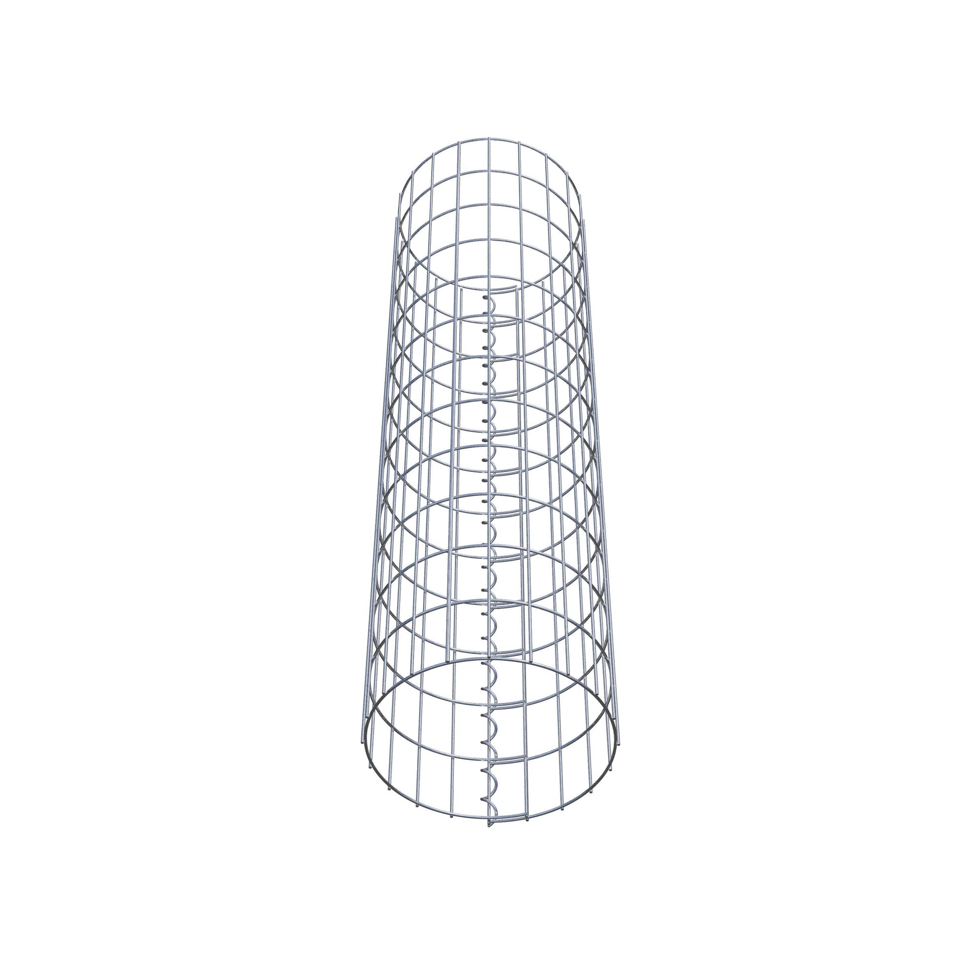 Der seitliche Verschluss erfolgt an der einzigen Überlappungsstelle des Gitters mit einer Spirale, die einfach eingedreht und zusammengedrückt wird. So entsteht eine saubere, sichere und dauerhafte Verbindung. Alternativ kann die Gabionensäule auch mit Klammern verschlossen werden, die separat erhältlich sind. Die Säulen sind nach oben und unten offen – ein Bodengitter oder Deckel ist nicht erforderlich und daher nicht im Lieferumfang enthalten.