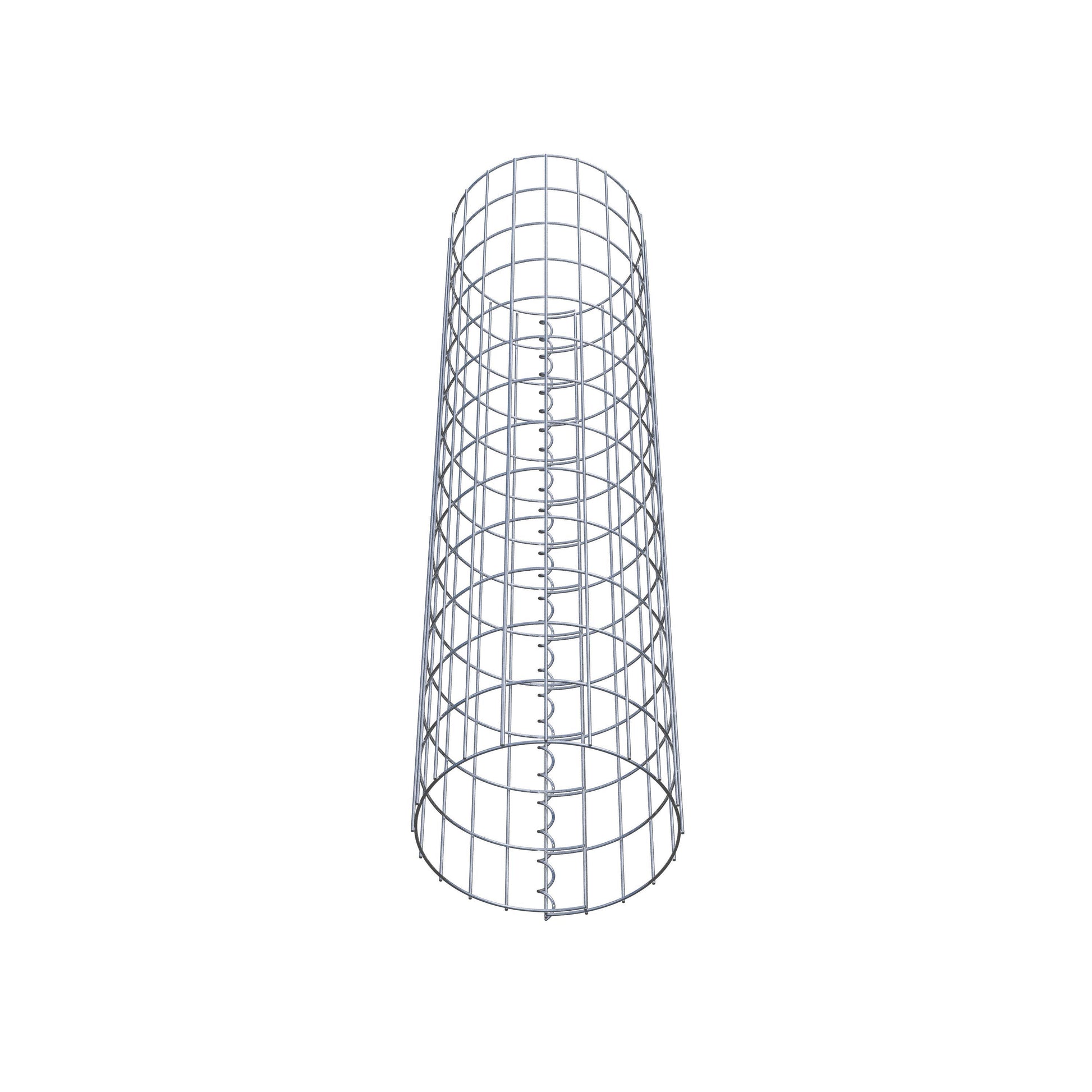 Der seitliche Verschluss erfolgt an der einzigen Überlappungsstelle des Gitters mit einer Spirale, die einfach eingedreht und zusammengedrückt wird. So entsteht eine saubere, sichere und dauerhafte Verbindung. Alternativ kann die Gabionensäule auch mit Klammern verschlossen werden, die separat erhältlich sind. Die Säulen sind nach oben und unten offen – ein Bodengitter oder Deckel ist nicht erforderlich und daher nicht im Lieferumfang enthalten.