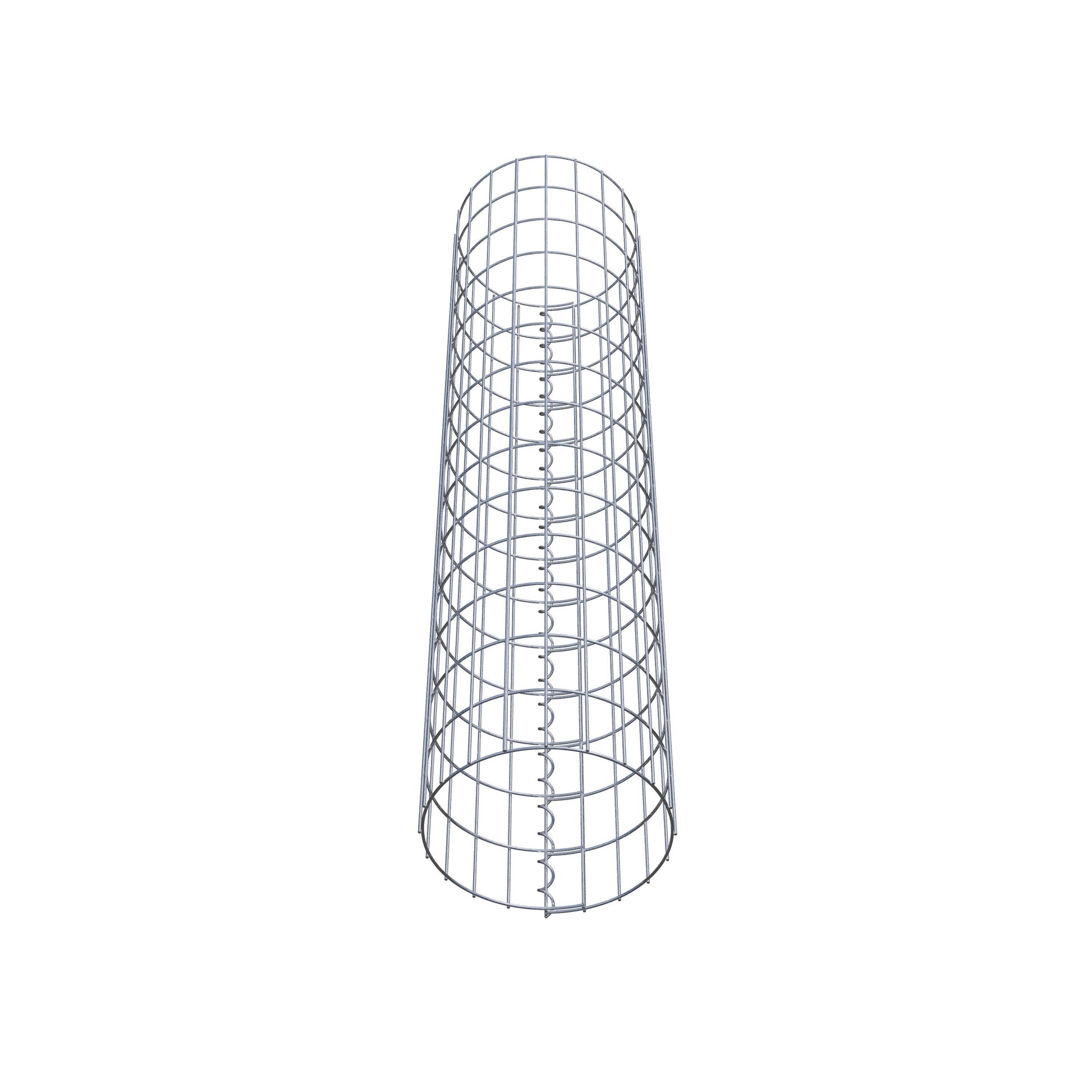 Der seitliche Verschluss erfolgt an der einzigen Überlappungsstelle des Gitters mit einer Spirale, die einfach eingedreht und zusammengedrückt wird. So entsteht eine saubere, sichere und dauerhafte Verbindung. Alternativ kann die Gabionensäule auch mit Klammern verschlossen werden, die separat erhältlich sind. Die Säulen sind nach oben und unten offen – ein Bodengitter oder Deckel ist nicht erforderlich und daher nicht im Lieferumfang enthalten.
