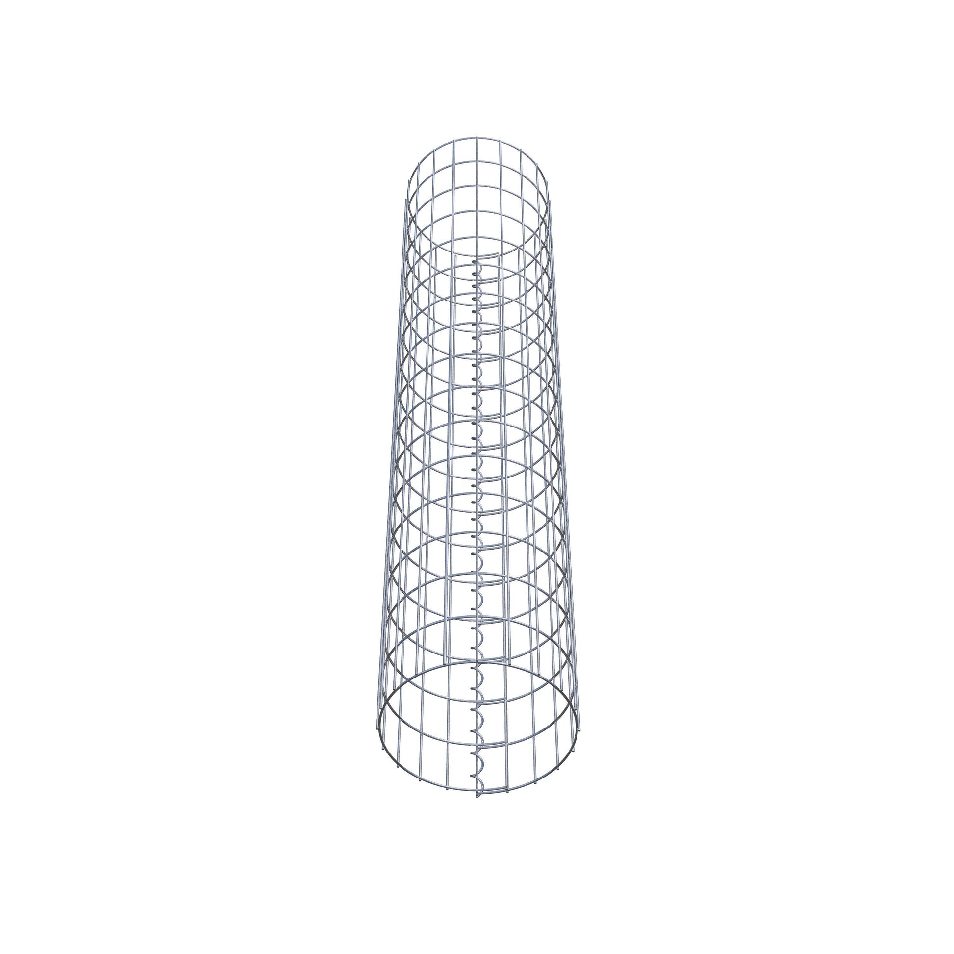 Der seitliche Verschluss erfolgt an der einzigen Überlappungsstelle des Gitters mit einer Spirale, die einfach eingedreht und zusammengedrückt wird. So entsteht eine saubere, sichere und dauerhafte Verbindung. Alternativ kann die Gabionensäule auch mit Klammern verschlossen werden, die separat erhältlich sind. Die Säulen sind nach oben und unten offen – ein Bodengitter oder Deckel ist nicht erforderlich und daher nicht im Lieferumfang enthalten.