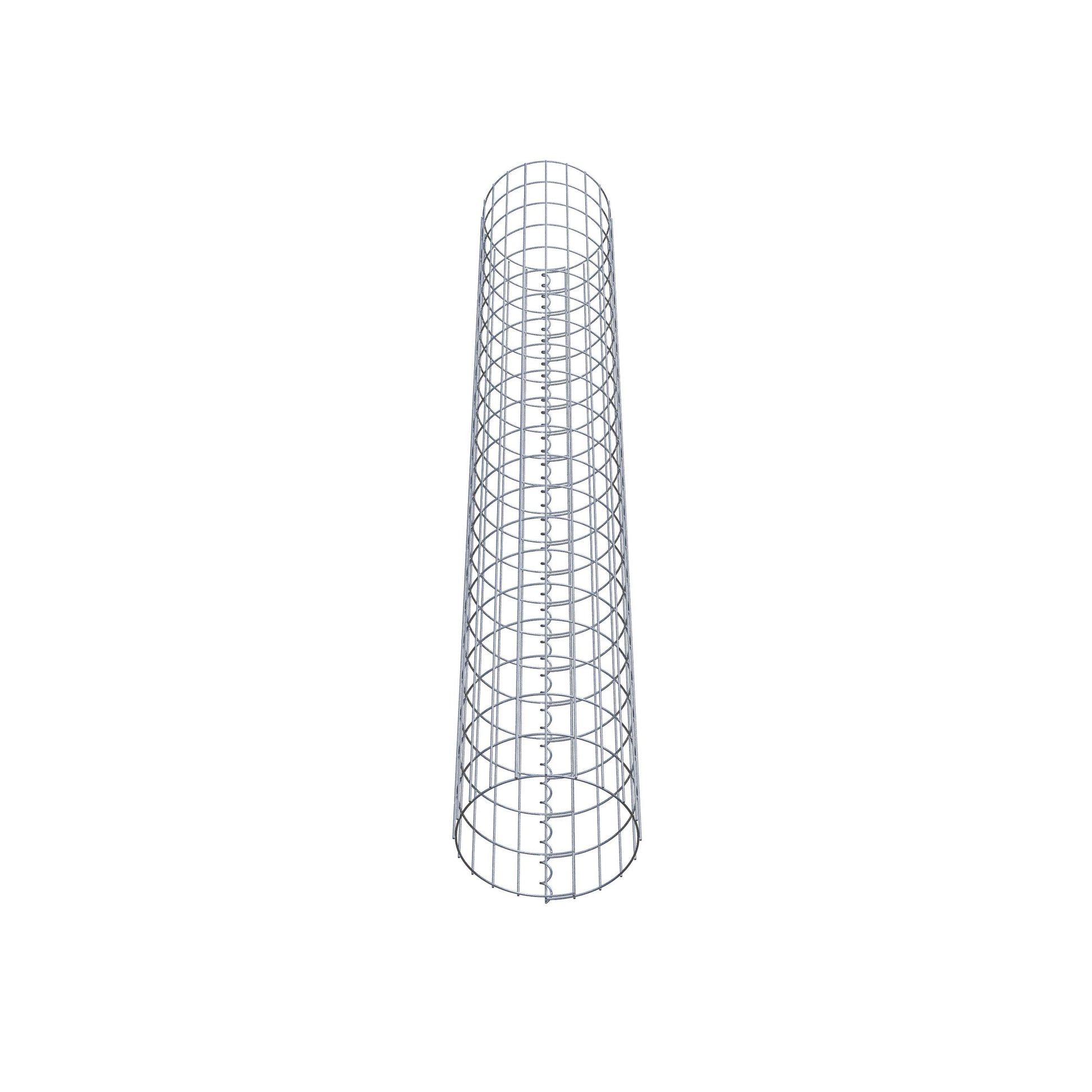 Der seitliche Verschluss erfolgt an der einzigen Überlappungsstelle des Gitters mit einer Spirale, die einfach eingedreht und zusammengedrückt wird. So entsteht eine saubere, sichere und dauerhafte Verbindung. Alternativ kann die Gabionensäule auch mit Klammern verschlossen werden, die separat erhältlich sind. Die Säulen sind nach oben und unten offen – ein Bodengitter oder Deckel ist nicht erforderlich und daher nicht im Lieferumfang enthalten.