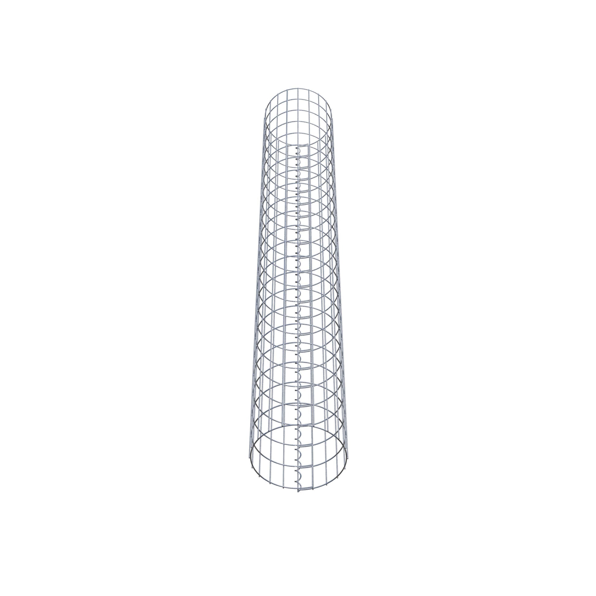Der seitliche Verschluss erfolgt an der einzigen Überlappungsstelle des Gitters mit einer Spirale, die einfach eingedreht und zusammengedrückt wird. So entsteht eine saubere, sichere und dauerhafte Verbindung. Alternativ kann die Gabionensäule auch mit Klammern verschlossen werden, die separat erhältlich sind. Die Säulen sind nach oben und unten offen – ein Bodengitter oder Deckel ist nicht erforderlich und daher nicht im Lieferumfang enthalten.