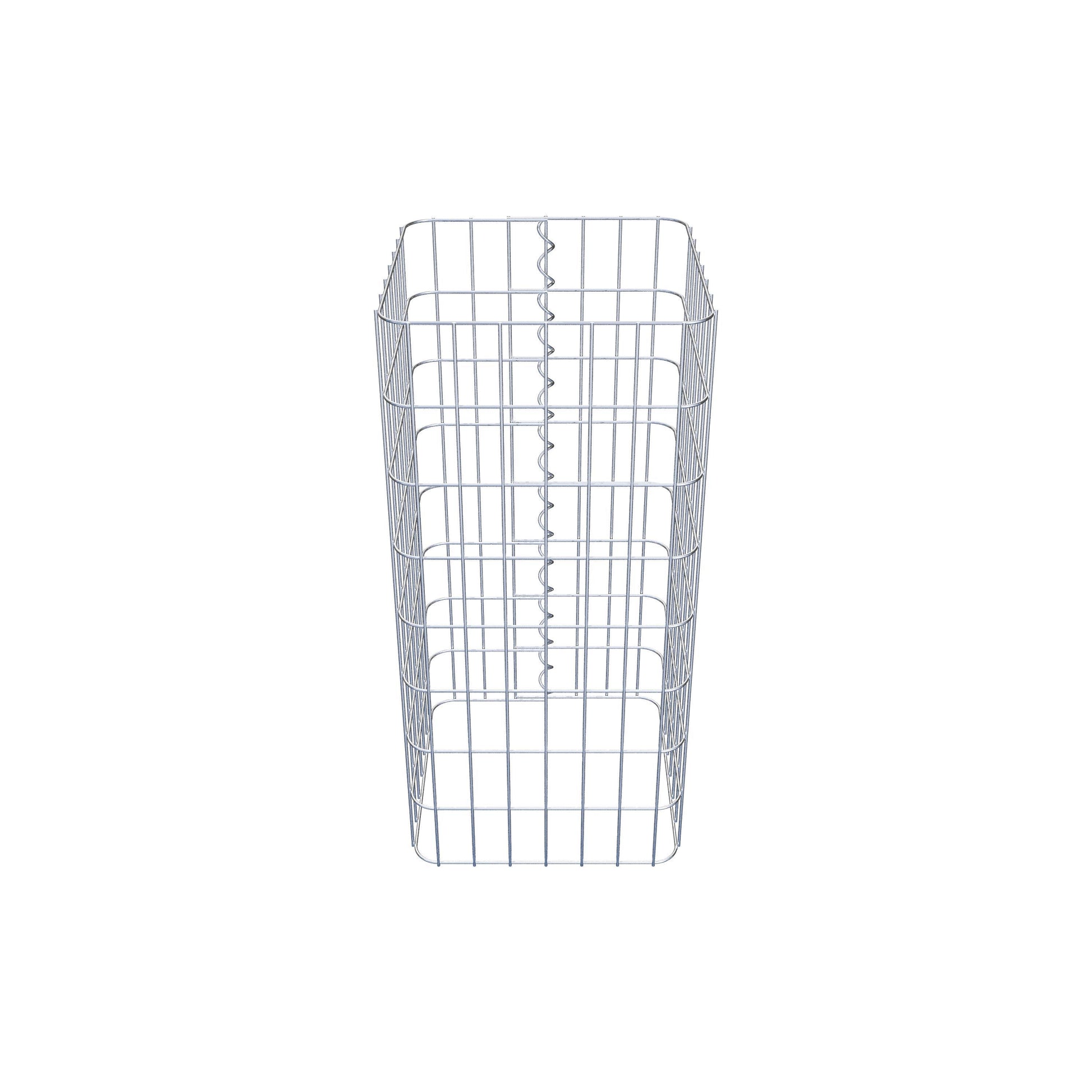Der seitliche Verschluss erfolgt an der einzigen Überlappungsstelle des Gitters mit einer Spirale, die einfach eingedreht und zusammengedrückt wird. So entsteht eine saubere, sichere und dauerhafte Verbindung. Alternativ kann die Gabionensäule auch mit Klammern verschlossen werden, die separat erhältlich sind. Die Säulen sind nach oben und unten offen – ein Bodengitter oder Deckel ist nicht erforderlich und daher nicht im Lieferumfang enthalten. Bei Bedarf kann ein Deckel zusätzlich erworben werden.