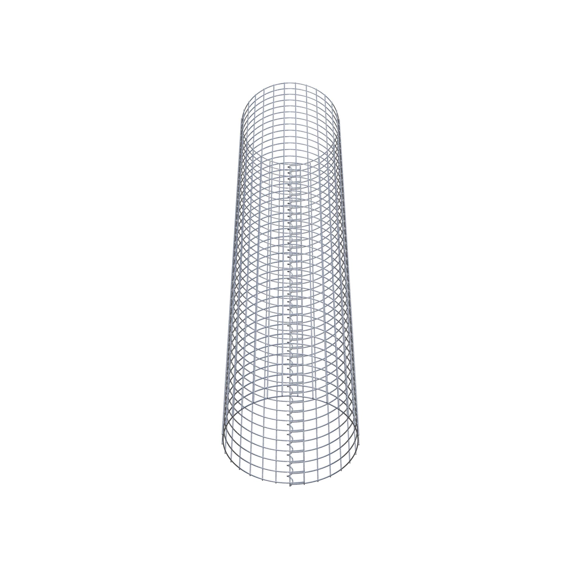 Der seitliche Verschluss erfolgt an der einzigen Überlappungsstelle des Gitters mit einer Spirale, die einfach eingedreht und zusammengedrückt wird. So entsteht eine saubere, sichere und dauerhafte Verbindung. Alternativ kann die Gabionensäule auch mit Klammern verschlossen werden, die separat erhältlich sind. Die Säulen sind nach oben und unten offen – ein Bodengitter oder Deckel ist nicht erforderlich und daher nicht im Lieferumfang enthalten.