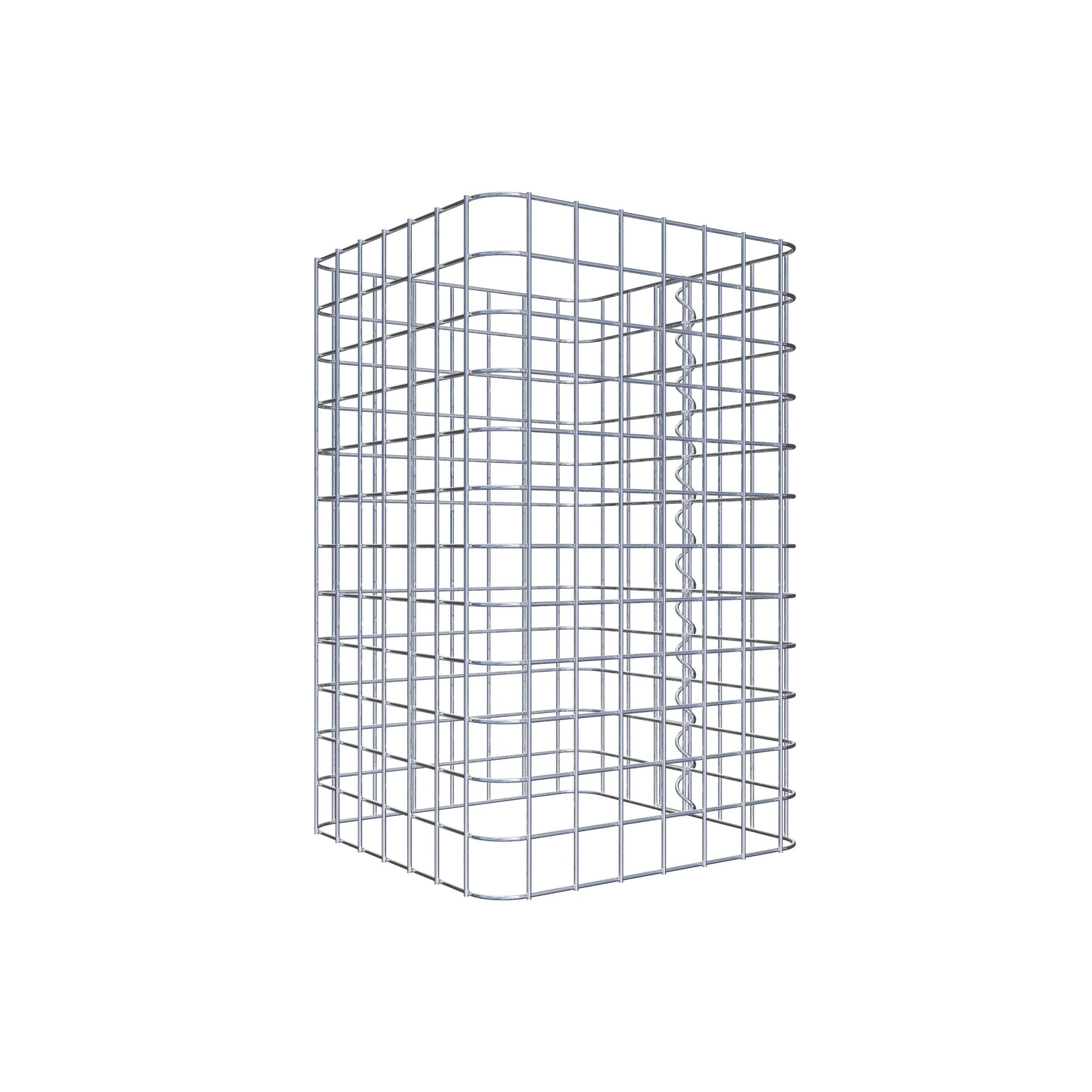 Sidostängningen görs vid gitterets enda överlappningspunkt med en spiral som helt enkelt skruvas in och pressas ihop. Detta skapar en ren, säker och permanent anslutning. Alternativt kan gabionpelaren också stängas med clips, som finns tillgängliga separat. Pelarna är öppna upptill och nedtill - ett bottengaller eller lock behövs inte och ingår därför inte i leveransen. Ett lock kan köpas separat vid behov.